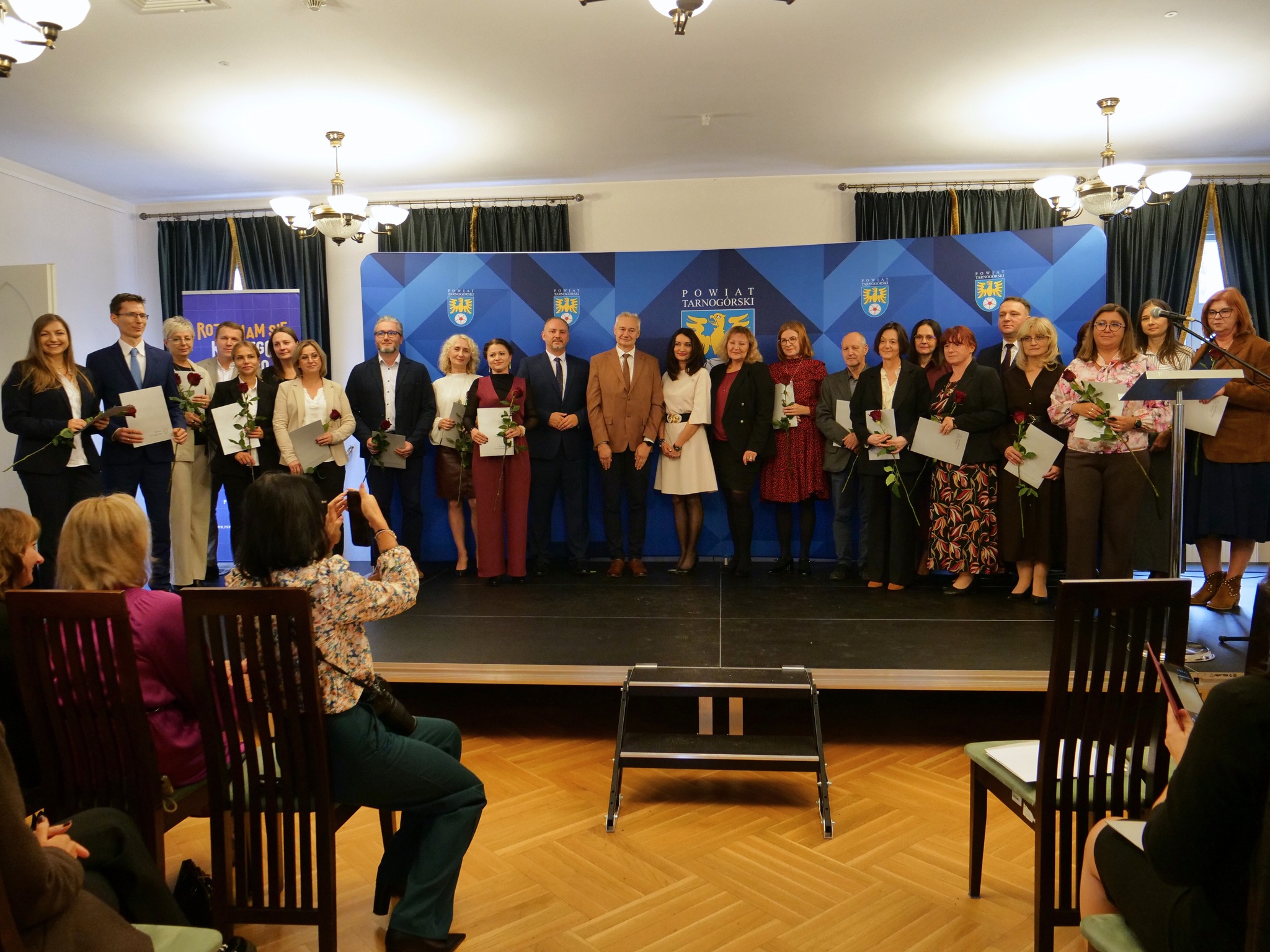 W uroczystości wzięli udział: Starosta Tarnogórski Adam Chmiel, Przewodniczący Rady Powiatu Tarnogórskiego Przemysław Cichosz, Wicestarosta Tarnogórski Anna Kubica, Zastępca Przewodniczącego Rady Powiatu Monika Dolnicka-Celary, Członek Zarządu Powiatu Dariusz Szopa, radni Rady Powiatu Tarnogórskiego, Sekretarz Powiatu Tarnogórskiego Barbara Machura, Naczelnik Wydziału Zarządzania Jednostkami Oświatowymi Ewa Lukosz, a także zaproszeni goście.