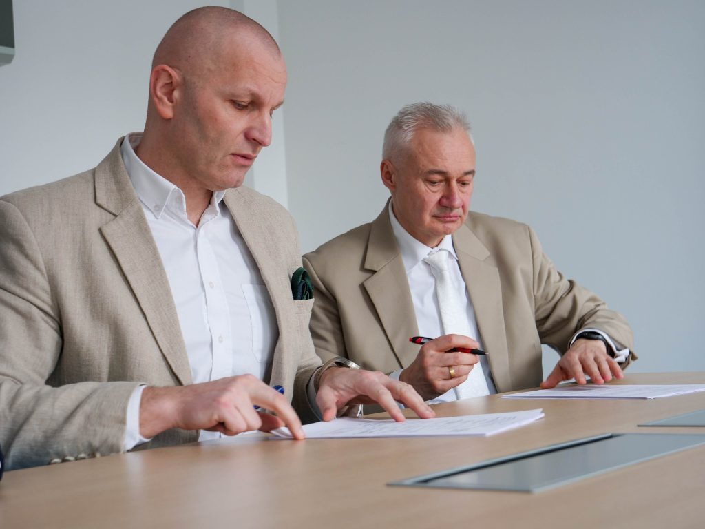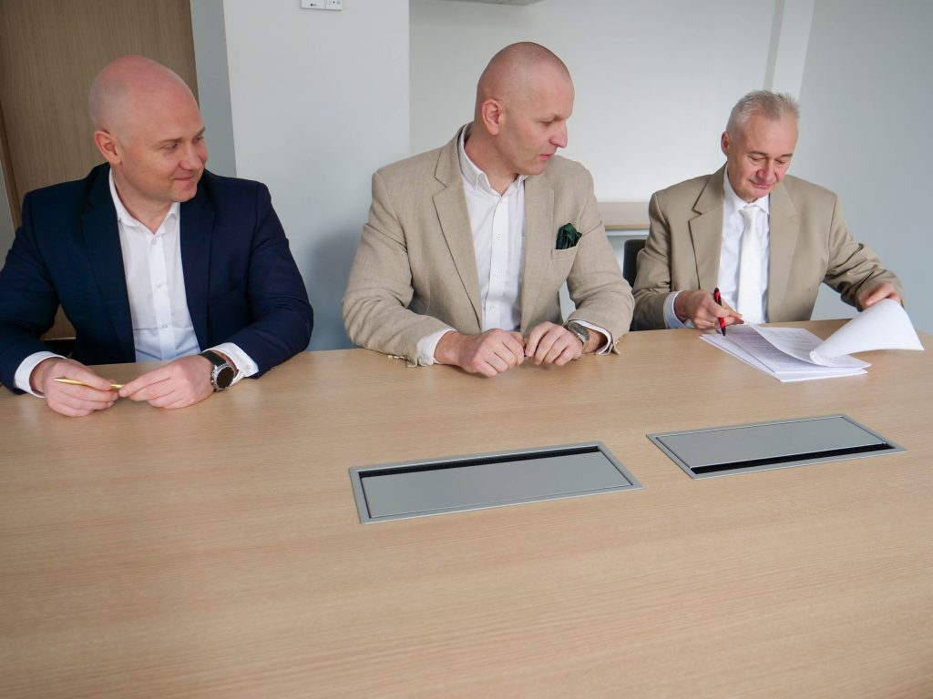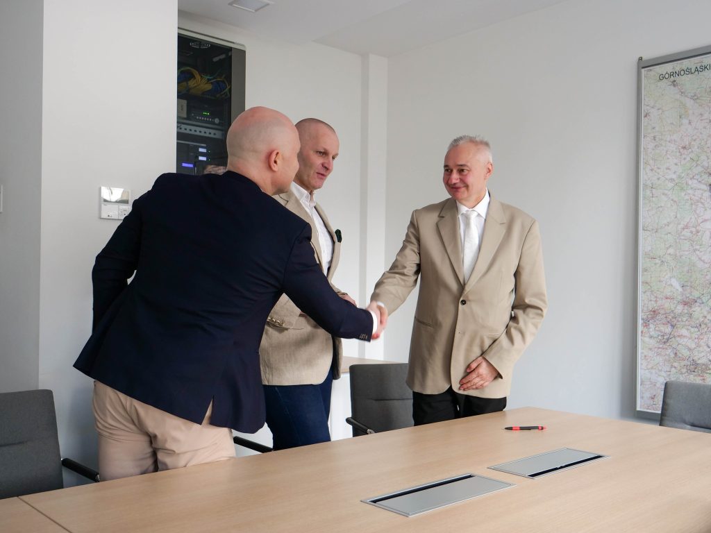 1 kwietnia 2026 r. Starosta Tarnogórski Adam Chmiel oraz przedstawiciele Górnośląskiego Przedsiębiorstwa Wodociągów S.A. w Katowicach – Prezes Zarządu, Dyrektor Generalny Łukasz Czopik oraz Wiceprezes Zarządu ds. Finansowych Krzysztof Wierzbicki – zawarli długoletnią umowę użyczenia nieruchomości stanowiących własność Skarbu Państwa, położonych na terenie gminy Świerklaniec, w obrębie zbiornika wodnego Kozłowa Góra.
